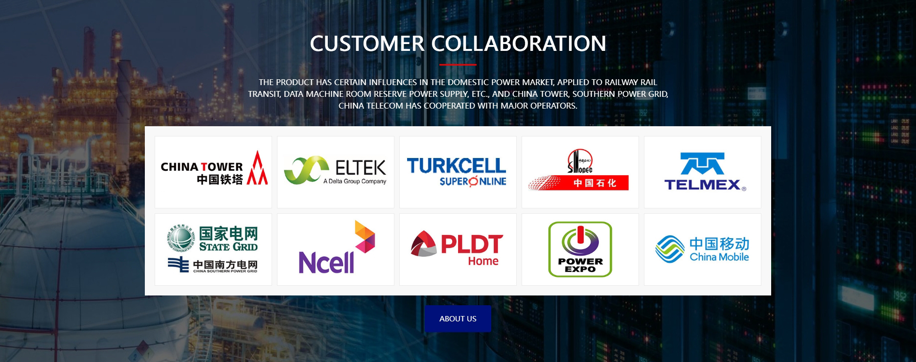 Produktet har visse påvirkninger på det indenlandske elmarked, der anvendes på jernbanetransit, datamaskinrums reserveforsyning osv.,og China Tower, Southern Power Grid,China Telecom samarbejdermed de store operatø